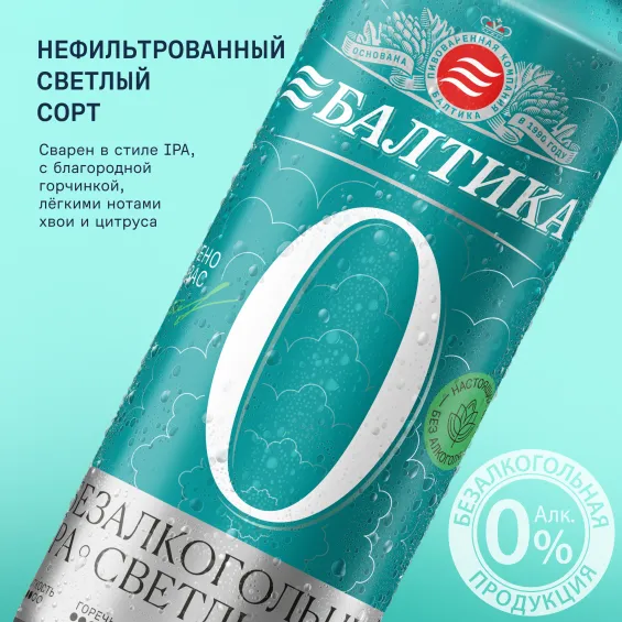 Балтика 0 IPA - для тех, кто ищет разнообразие и ценит яркие насыщенные вкусы."