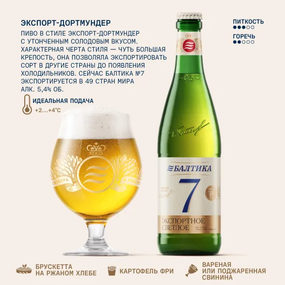 Пиво «Балтика 7» сварено из лучших российских ингредиентов - отборного 100% солода и хмеля,