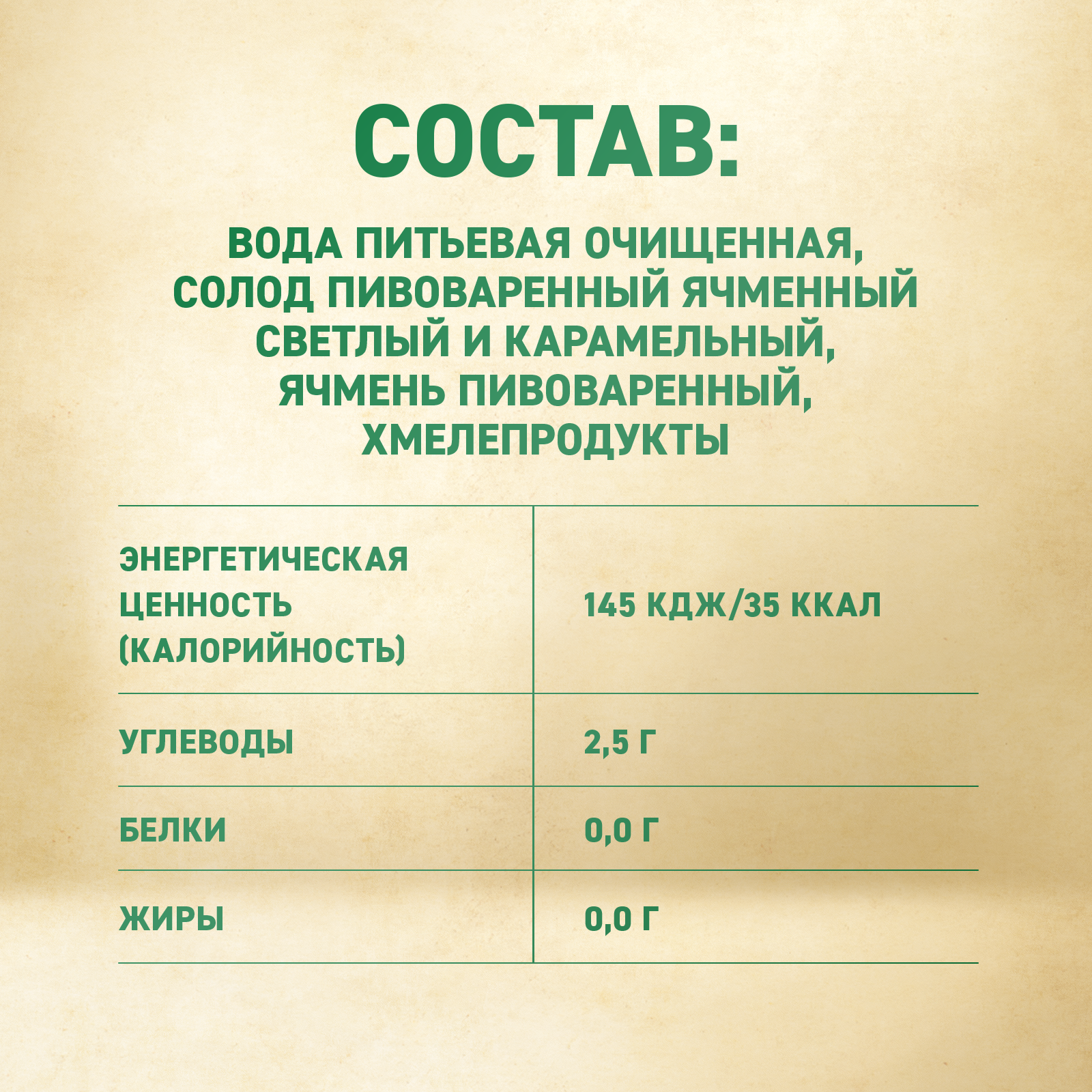 Вода питьевая очищенная, солод ячменный светлый, ячмень пивоваренный, солодовый экстракт, хмелепродукты.
