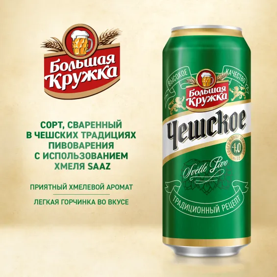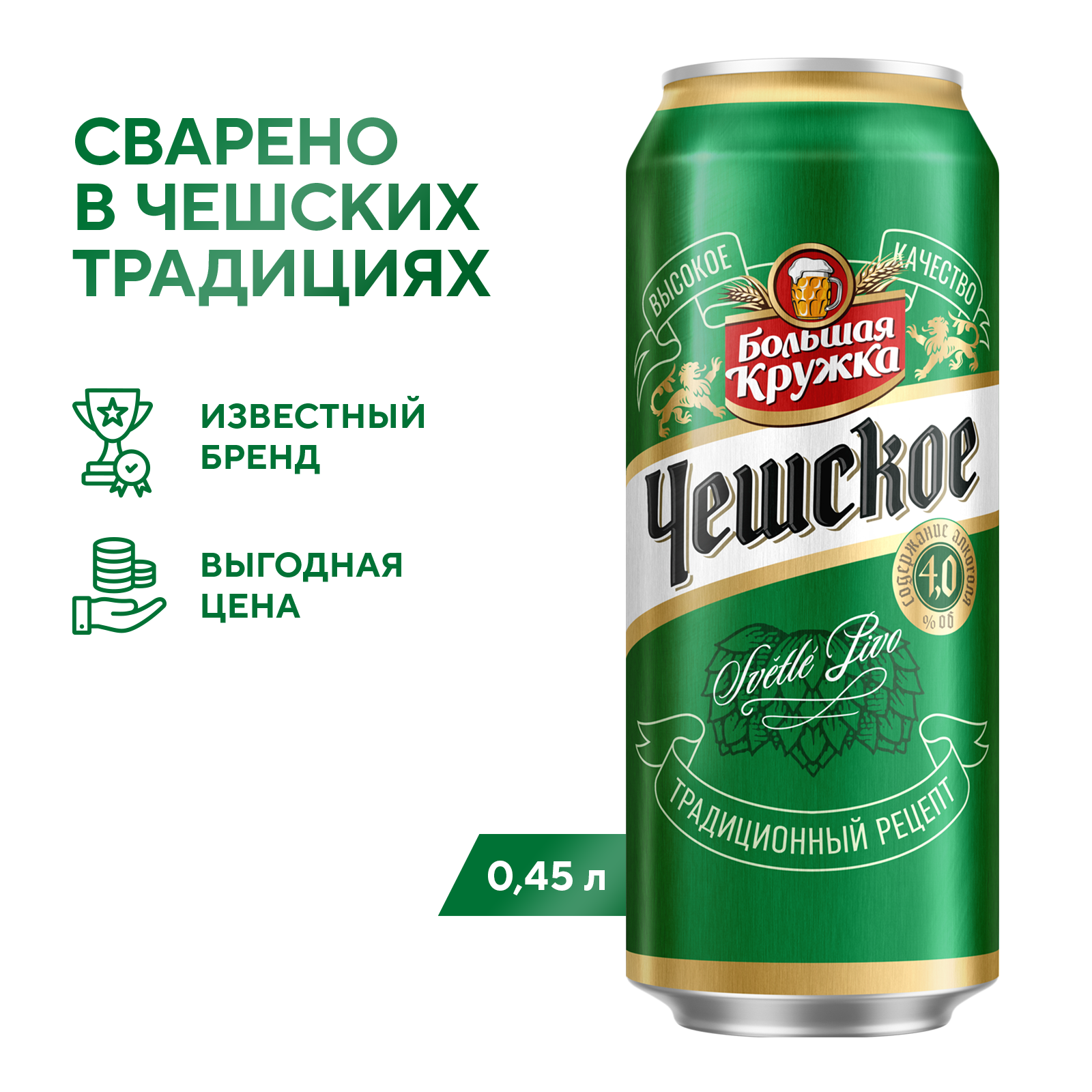 "Большая Кружка Чешское Банка 0,45 – насыщенный вкус настоящего чешского пива! Большая Кружка