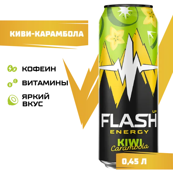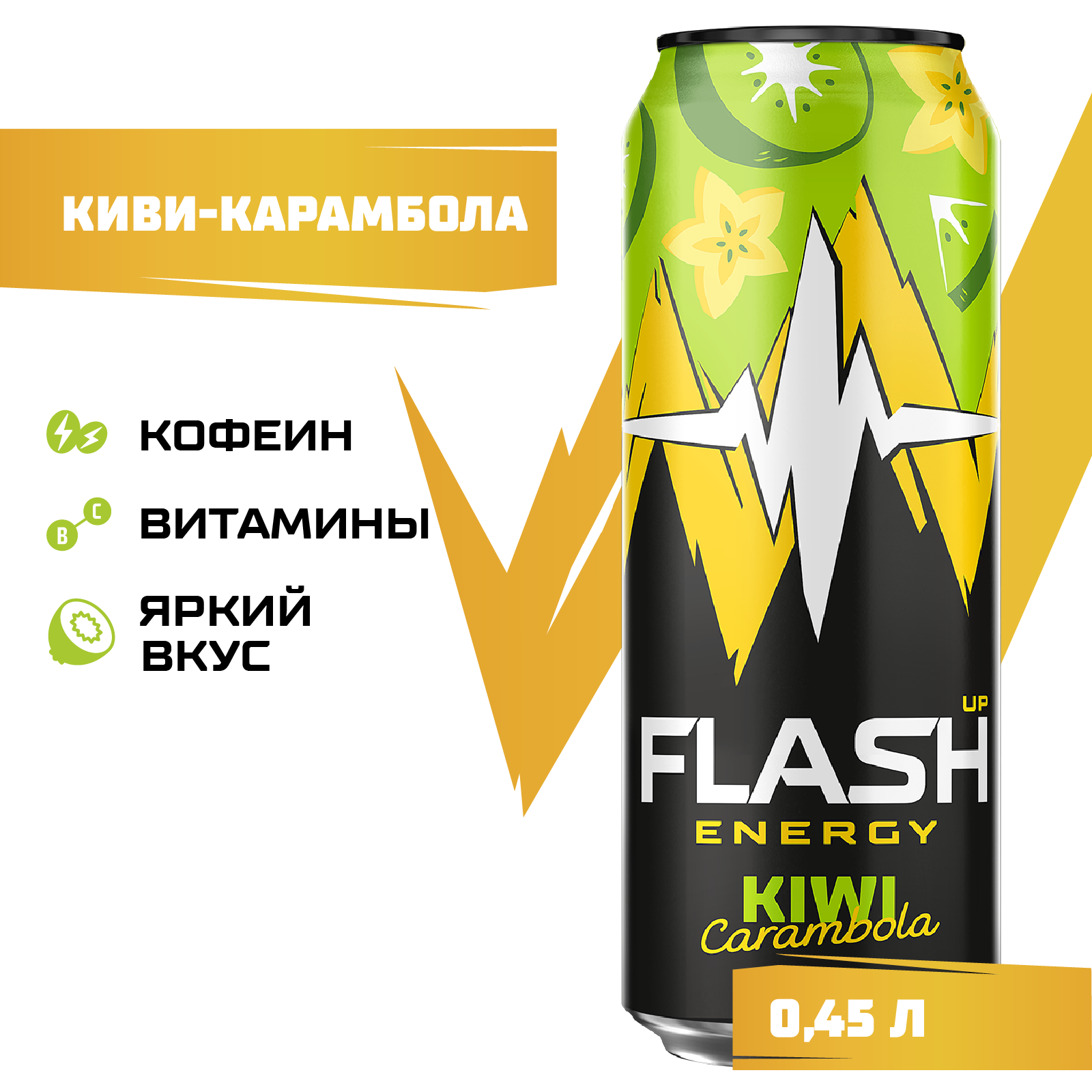 "Flash Up Energy Kiwi-Carambola Банка 0,45 л – Экзотическая энергия для тебя! Flash Up Energy