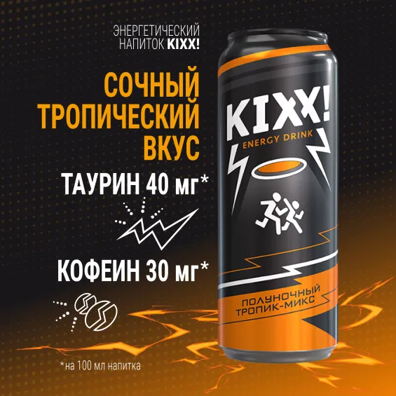 Погрузись в тропическую магию ночи с KIXX Полуночный Тропик-Микс – вдохновленным духом ночных исследований Дмитрия Масленникова, созданным для тех, кто живет ярко и смело. Этот напиток сочетает сочный микс тропических фруктов и мощную формулу энергии, чтобы ты мог наслаждаться каждым мгновением, независимо от времени суток.