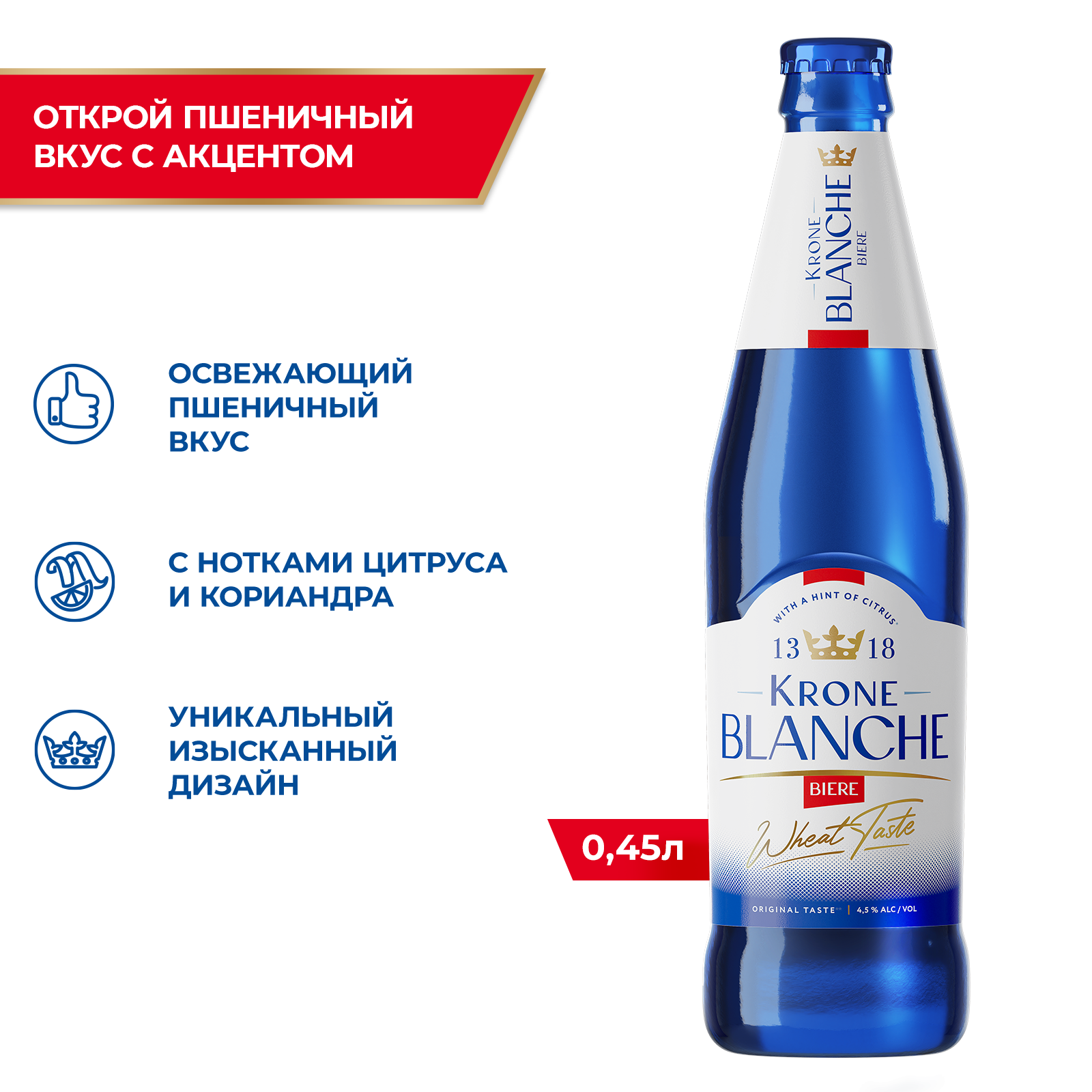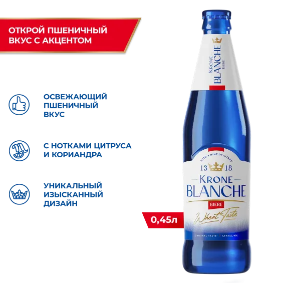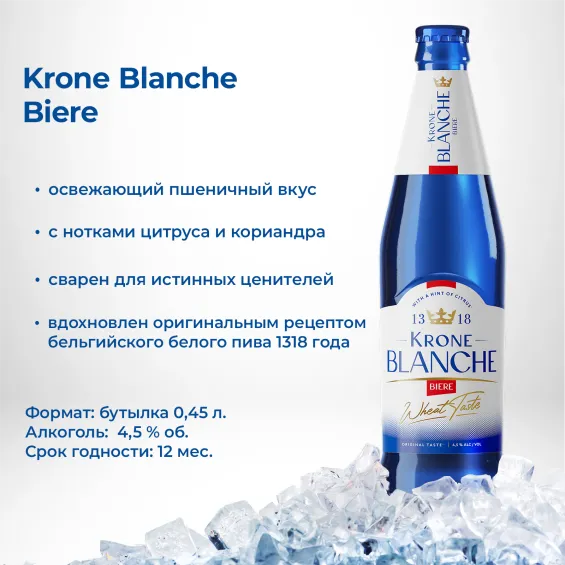 Попробуй Krone Blanche Biere — насладись лёгким вкусом и свежестью этого пива в стиле Blanche!"