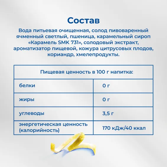 Классический стиль Blanche с цитрусовыми и пряными нотками.