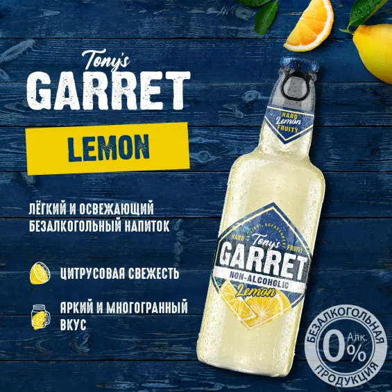 Tony's Garret Hard Lemon Non alcoholic Бутылка 0,4