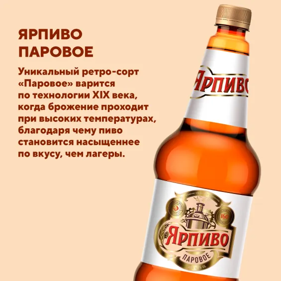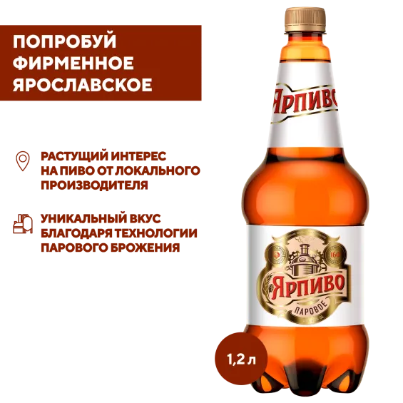Ярпиво Паровое ПЭТ 1,2 производится из высококачественного солода и отборного хмеля, что обеспечивает чистый и свежий вкус. Напиток идеален как для повседневного употребления, так и для праздничных мероприятий.